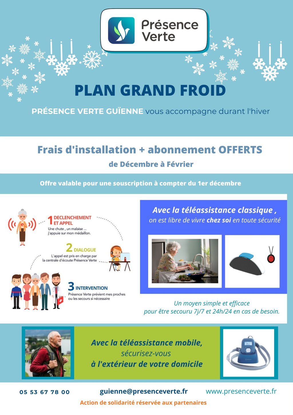 Dans une démarche de prévention, Présence Verte renouvelle son offre « Plan Grand Froid » pour apporter une réponse aux personnes les plus fragiles afin de leur permettre de vivre dans de meilleures conditions les épisodes hivernaux.