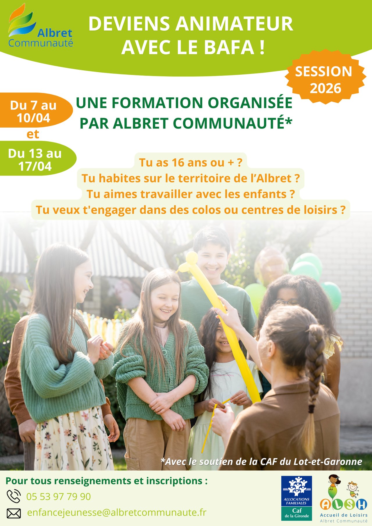 FORMATION BAFA session 2026 organisée par Albret Communauté :