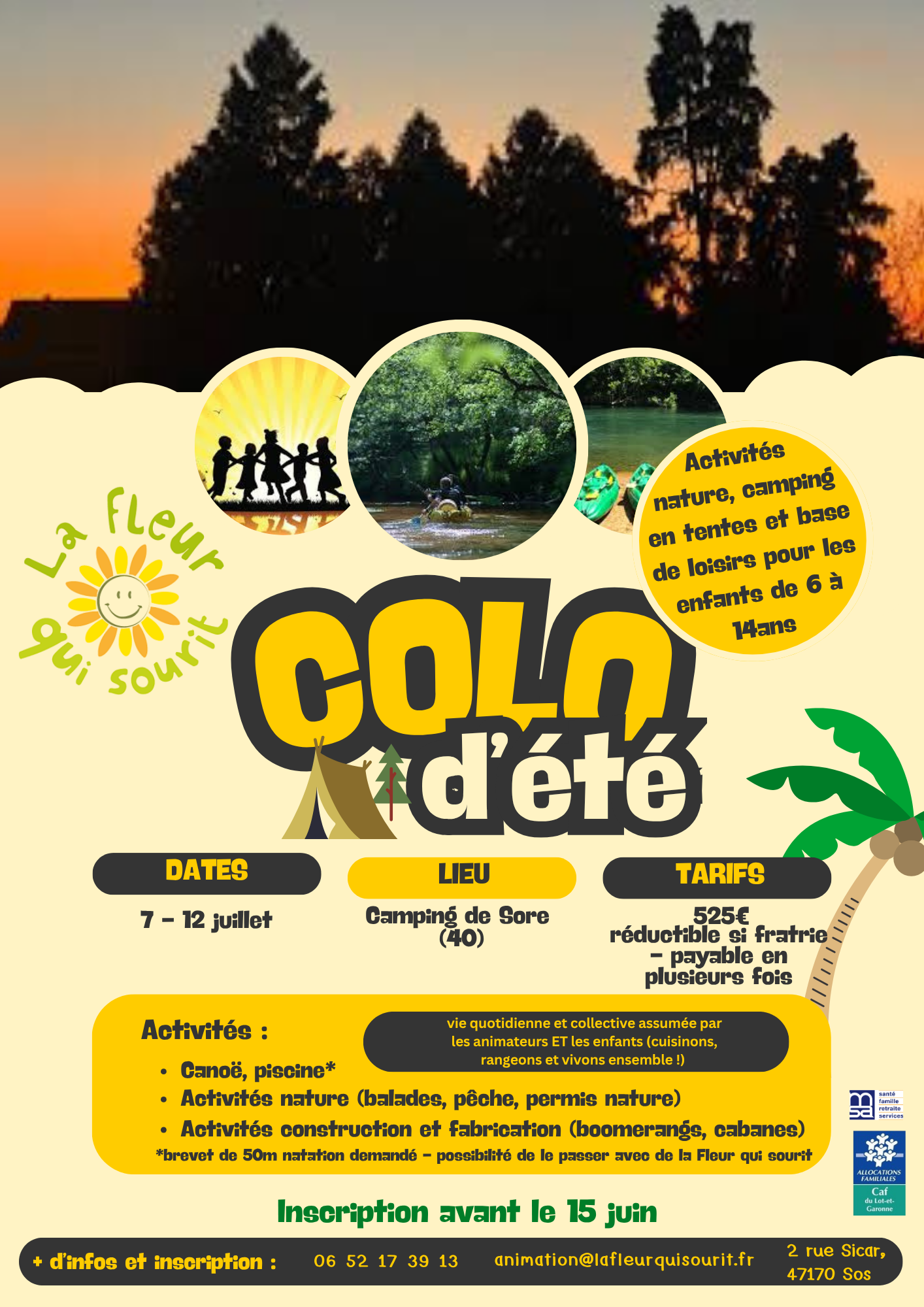 L'association La Fleur qui sourit propose une colo d'été du 7 au 12 juillet 2026.