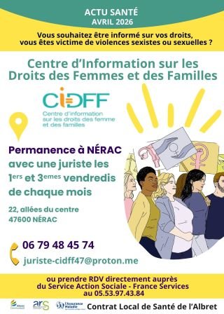 Actu Santé Avril 2026 : Permanence du CIDFF à NERAC – Centre d’information sur les droits des femmes et des familles