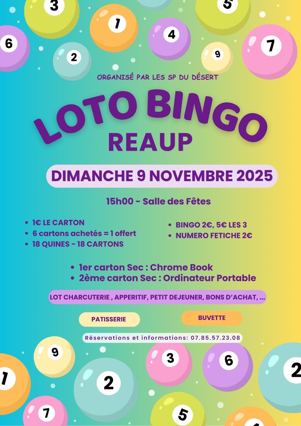 Alors ne rate pas le Loto Bingo de Réaup le dimanche 9 novembre à 15h !